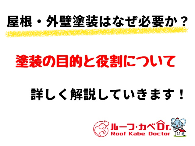 この記事では、屋根・外壁塗装はなぜ必要か?塗装の目的と役割について詳しく解説していきます。 屋根・外壁塗装が必要な理由屋根・外壁塗装が必要な理由は大きく分けて3つあります。1.建物を保護するため。2.建物の美しさを保つため。3.必要に応じて色塗り以外の特殊効果がある機能を付加するため。この後、それぞれの目的と役割を詳しくご説明致します。屋根・外壁塗装の目的と役割 | 1. 建物を保護1部特殊な場合を除き、屋根と外壁材は塗装がされていて塗膜によって保護されています。塗膜とは一般的に塗料を塗って乾燥した後に形成され作られる膜のことを言います。塗膜を形成することによって『紫外線』『熱(太陽光の赤外線)』『雨(水分)』から建物を守り、塗装している建材の劣化を防止・抑制します。屋根・外壁塗装の目的と役割 | 2. 建物の美しさを保つ新築時には美しかった建物も、年数が経つと色あせ、変色、汚れなどが目立ってきます。塗装をすることによって建物の見た目を良好な状態に保ちます。新築時と同じようなイメージで同様の色で塗装をしたり、イメージを一新して全く違う色で塗装したりして美しい見た目を取り戻すことができます。屋根・外壁塗装の目的と役割 | 3. 必要に応じて色塗り以外の特殊効果がある機能を付加する最近の塗料は、単純な色塗りや耐用年数だけではなくお客様のニーズに合わせて様々な機能を備え効果を発揮する塗料がリリースされています。例としては『遮熱』・・・太陽からの熱(近赤外線)を反射するとこによって熱吸収を抑え、温度上昇を抑える『断熱』・・・熱伝導率を抑え熱を伝えにくい性質を持ち、熱や冷気の侵入を防ぎ温度変化を抑える『低汚染』・・・汚れがつきにくく、親水性が高いので雨水で汚れを洗い流す『防カビ』・・・防カビ剤・抗菌材が添加されていてカビを発生しにくくするなどの機能を持たせた塗料。特殊な機能が付加された塗料を使うとより快適な生活を得られる事ができメンテナンスの手間も省くことができます。まとめ塗装によって保護している塗膜は時が経つと劣化していきます。屋根・外壁塗装は、『建物を保護』『建物の美しさを保つ』『特殊効果がある機能を付加する』のに必要なことです。故に、『綺麗に』『快適に』『長く』住むためには必要に応じてメンテナスをしていくことをおすすめします。お問い合わせ先ルーフカベドクターは川越市を中心にして雨漏りに強い屋根塗装、外壁塗装の専門店です。塗装以外でもお家のことで気になることなどございましたら気軽にお問い合わせください。経験豊富なスタッフが親身になってお話を伺います。相談、調査、診断、御見積のご説明は無料です。 電話でのお問い合わせメールでのお問い合わせ 2024年02月04日 更新迷ったら聞いてみよう!
