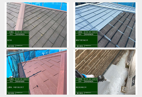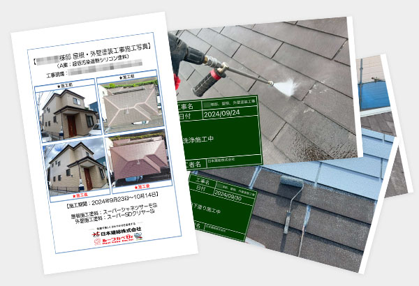 各工事がちゃんと施工されているか、見積もり通りの塗料を使っているかなどをひと目見てわかるようにするため、ルーフカベドクターでは工程すべてを写真撮影しております。