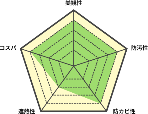 防藻・防カビ性能 塗膜に発生する藻やカビを抑制する性能があり、美観の維持に貢献します。湿気が多い環境でも、カビや藻の発生を防ぎ、清潔感を保ちます。
