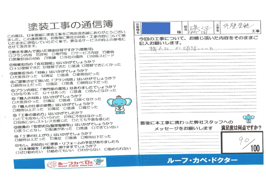 【川越市】外壁塗装工事 S様外壁塗装工事 2022.05.01 (Sun) 更新 お客様から頂いた評判の声 職人さんが頑張ってくれました! 職人さんよく頑張っていた 施工担当者よりメッセージ 【川越市】外壁塗装工事 S様 施工データ 工事内容 外壁塗装工事 外壁塗装 次の記事 一覧 前の記事 迷ったら聞いてみよう! 相談診断お見積り無料 0120-89-1152受付/9:30~18:00(月・木曜日定休) お問い合わせ・お見積り ショールーム来店予約
