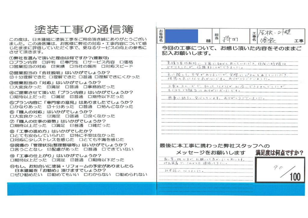 工事もスムーズで、私はなかなかお会いできませんでしたがLINEでの報告はありがたかったです。