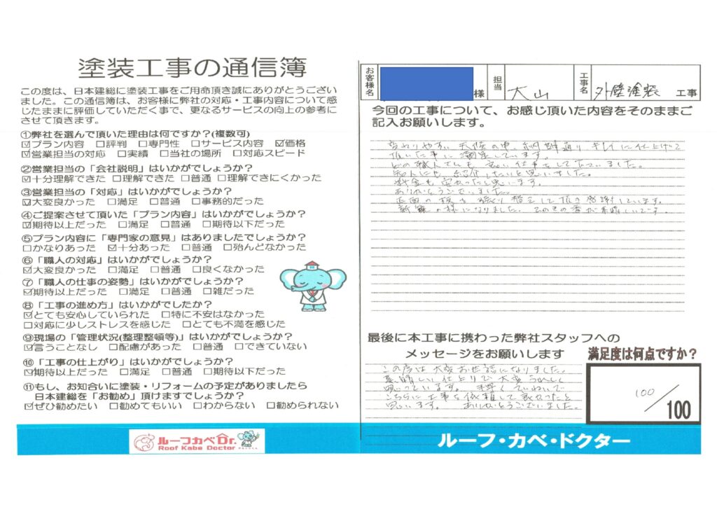 変わりやすい天候の中、納期通りキレイに仕上げて頂いた事に満足しています。