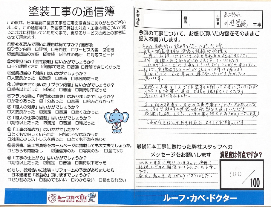 これからも家のことで困った際には、外壁塗装を含め、相談できるパートナーとして末長くお付き合いできればと思っています。