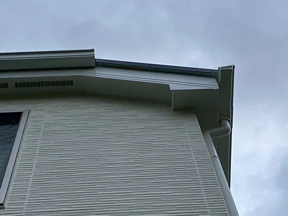付帯部塗装 外壁塗装とあわせて雨樋や破風板などの付帯部分も塗装し、建物全体を美しく仕上げました。