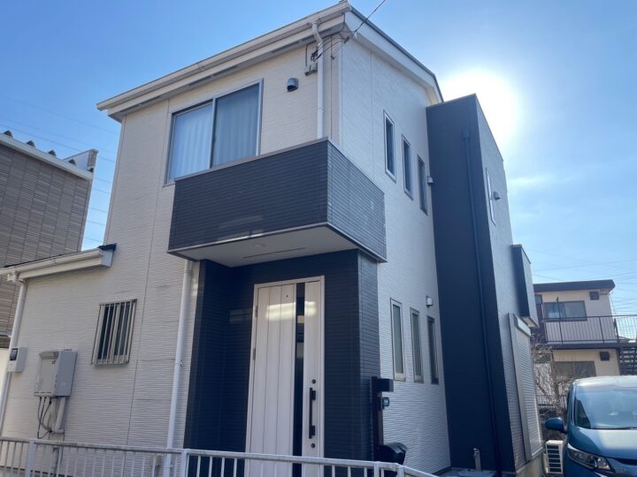 外壁塗装に関しては、デザイン性と耐候性を両立させるため、チャコールグレーをベースにホワイトの幕板でアクセントを追加。川越市の落ち着いた街並みに調和する、品のある仕上がりを実現しました。